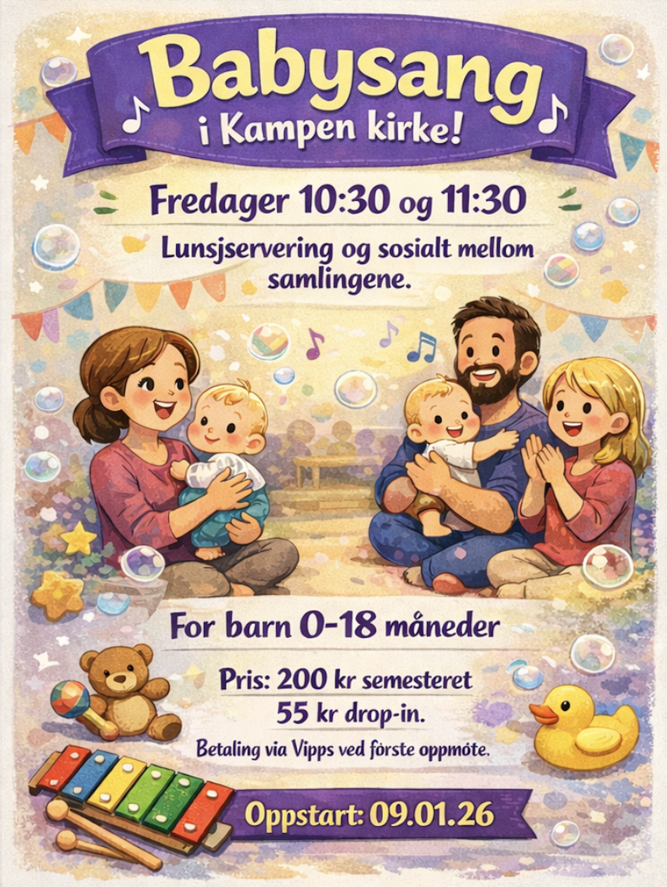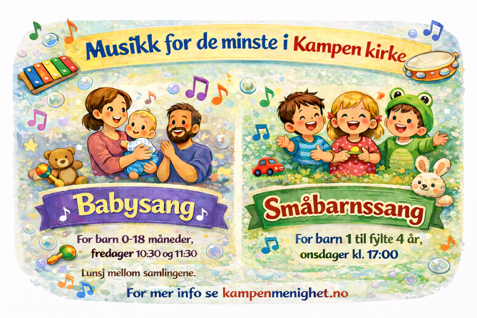 Velkommen til Småbarnssang og Babysang i Kampen kirke, våren 2026